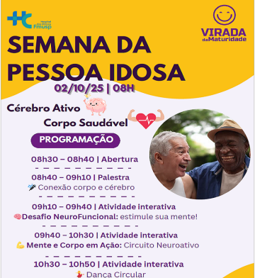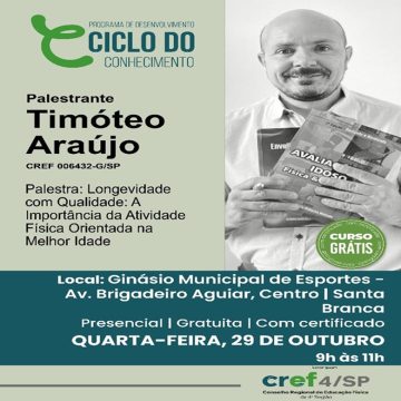 21/10 (terça-feira), das 10h às 12h, acontece o evento “Atividade Física e Saúde Mental – Movimentando o Bem-Estar Físico, Social e Psicológico”. -