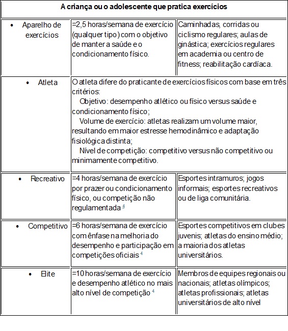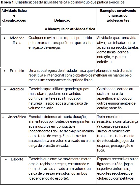 Tabela 1. Classificações da atividade física e do indivíduo que pratica exercícios.