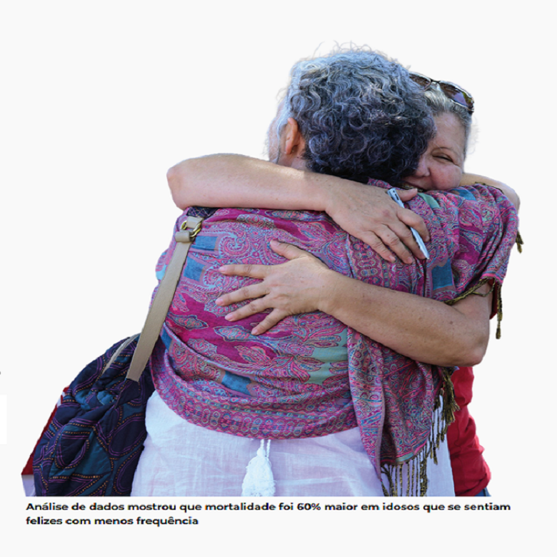 Ao analisar os relatos sobre a presença do sentimento de felicidade, a tese mostrou que idosos que se sentiam felizes com menor frequência apresentaram um risco de morte 60% maior em comparação àqueles que vivenciavam esse sentimento mais frequentemente. Na prática, os idosos mais felizes viveram, em média, um ano a mais do que os menos felizes, mesmo quando ambos apresentavam doenças crônicas. A felicidade funcionou como um “amortecedor”, reduzindo em 14% o efeito negativo das limitações físicas sobre o risco de morte.