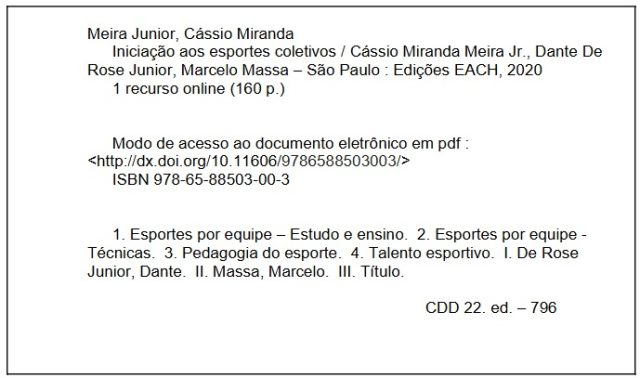O livro “Iniciação aos esportes coletivos” não foge a essa regra. Os autores – Cássio Miranda Meira Jr., Dante De Rose Jr. e Marcelo Massa, dentro de suas especialidades e domínios de conteúdo trazem à tona alguns dos aspectos mais importantes relacionados ao tema, com a plena consciência de que há ainda muito a se discutir no contexto dos esportes coletivos, principalmente, quando se relaciona à iniciação esportiva.