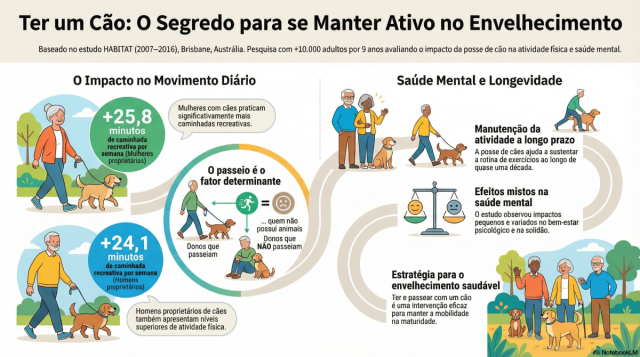 - Citação: Adams, E. K., Murray, K., Bauman, A., & Christian, H. (2025). Dog Ownership, Physical Activity, and Mental Health in Mid-to-Older Aged Adults: Findings From the HABITAT Cohort Study. Journal of Physical Activity and Health, 22(12), 1611-1620. Retrieved Feb 3, 2026