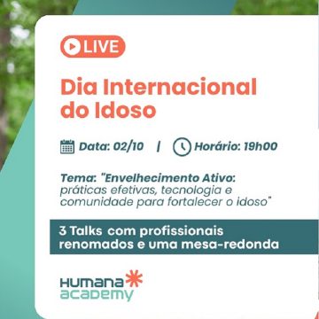 O evento acontecerá no dia 02 de outubro, às 19h, com transmissão pelo canal do YouTube da Humana Academy.