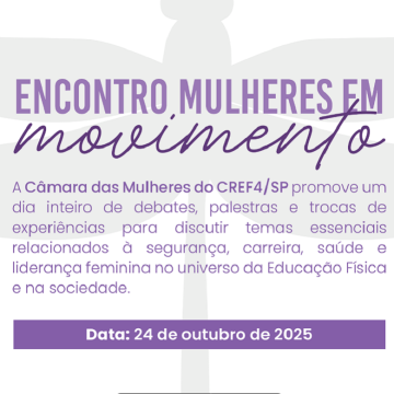 A Câmara das Mulheres do CREF4/SP promove um dia inteiro de debates, palestras e trocas de experiências para discutir temas essenciais relacionados à segurança, carreira, saúde e liderança feminina no universo da Educação Física e na sociedade.