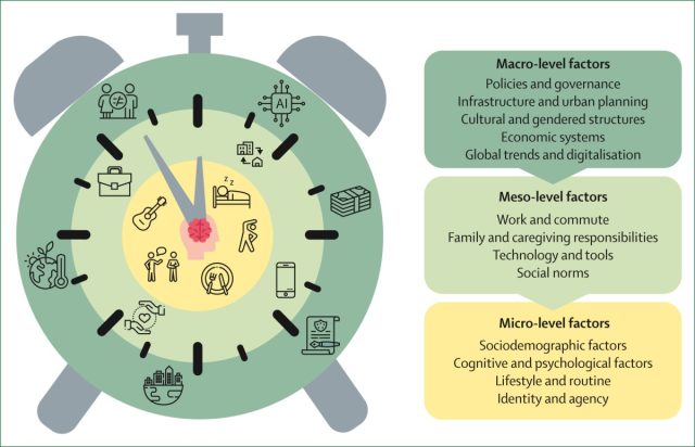 Ela abrange tempo insuficiente para descanso, ritmos biológicos desalinhados, lazer fragmentado e a invasão do tempo pessoal pelas demandas do trabalho ou digitais. A pobreza de tempo é uma manifestação mensurável, que denota tempo insuficiente para a saúde cerebral, afetando desproporcionalmente populações estruturalmente desfavorecidas e sendo exacerbada por culturas orientadas para o desempenho. Embora haja fortes evidências de fatores de risco modificáveis para demência, como sono, atividade física, nutrição e engajamento social, a adoção de comportamentos saudáveis exige tempo. Nesta Perspectiva Pessoal, integramos insights da epidemiologia, neurociência e pesquisas sobre o uso do tempo para argumentar que abordar a desigualdade temporal é essencial para a saúde cerebral e a redução do risco de demência.