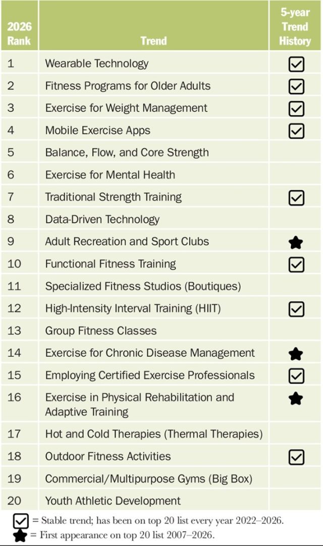 Tendências de fitness mundiais da ACSM 2026: direções futuras do setor de saúde e fitness