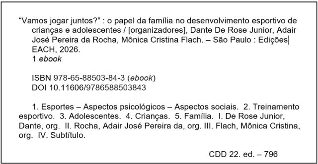 Vamos jogar juntos?” : o papel da família no desenvolvimento esportivo de crianças e adolescentes. Dante De Rose Junior, Adair José Pereira da Rocha, Mônica Cristina Flach. – São Paulo : Edições EACH, 2026.